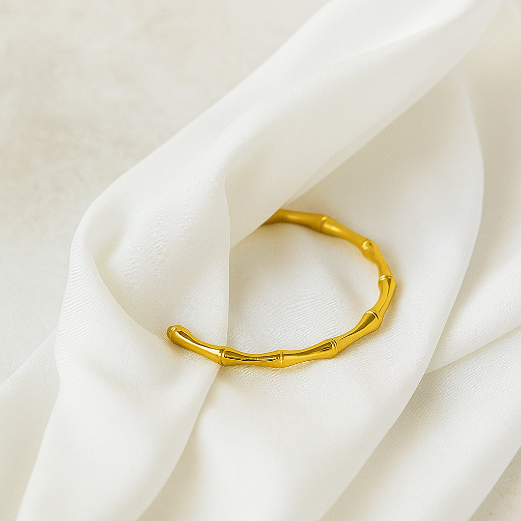 Sleek and sculpted with bamboo-inspired curves, Bambina adds a soft statement to any stack. Lightweight, timeless β and completely anti-tarnish.