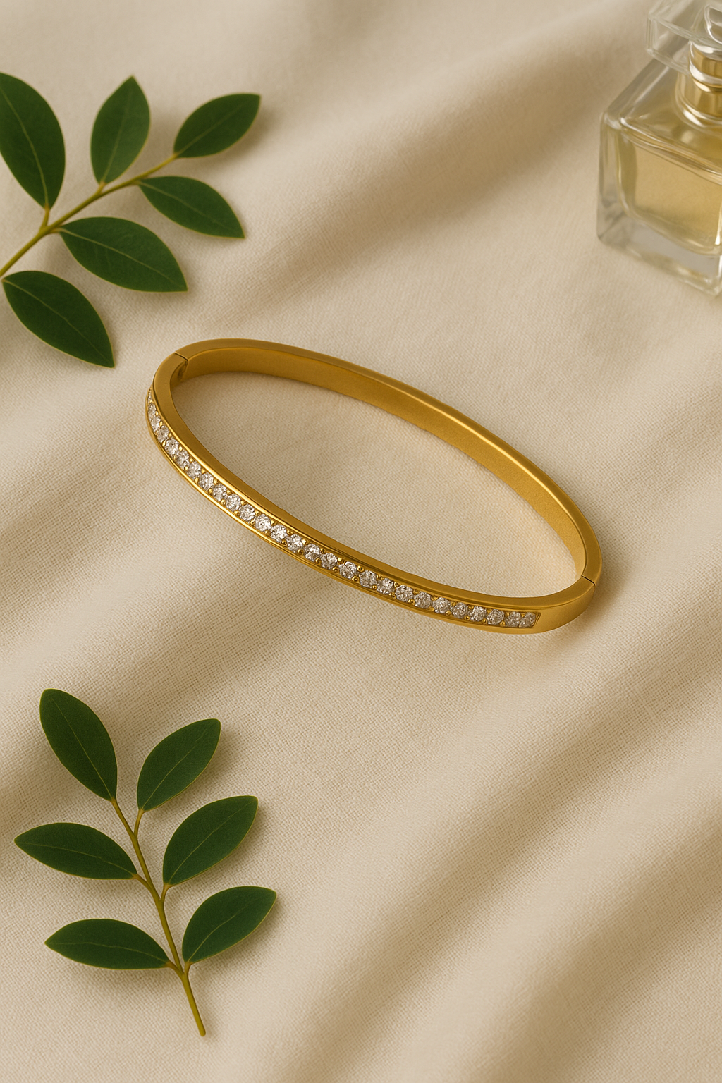 Clean lines, pure elegance. Rayna features vertical beaded texture that catches the light with every move. Understated shine, anti-tarnish charm.